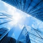 Modern business skyscrapers, high-rise buildings, architecture raising to the sky, sun. Concepts of financial, economics, future etc.