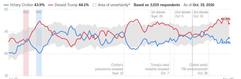 One of the 2016 presidential election polls, however – the 2016 USC / LA Times poll – had pegged more overall support for Trump than Clinton. The poll surveyed 2,000 national voters every week, with 500 tracked daily, and used different weightings compared to other polls. While Clinton will likely win the popular vote while losing the electoral college, the poll had noted that “Trump’s chance of winning depended on mobilizing white voters who had sat out the 2012 election — something that he clearly has succeeded in doing in several key states.” The poll also modeled a stark shift away from Clinton in the final days leading up to the election.