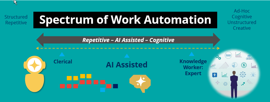 Of course, AI can be applied in all areas within consumer and enterprise applications – not just work automation. However, as Blockchain evolves into value chain the emphasis on intelligent automation becomes imperative. This spectrum of automation enabled and empowered through AI, is critical to Blockchain solutions – discussed next.