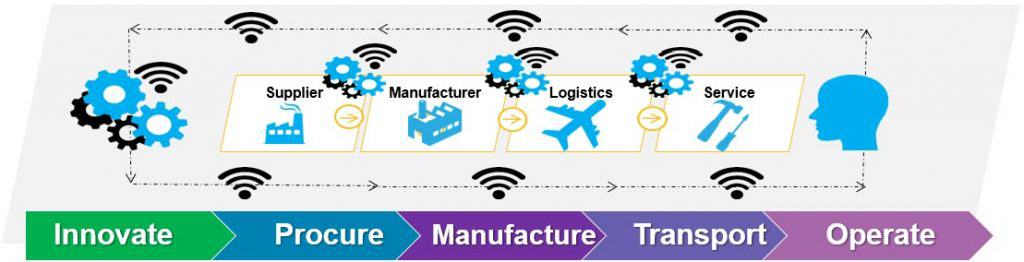 The applications are many. Through peer-to-peer transactions without intermediaries, blockchain technology lets individuals and organizations easily exchange digital money and execute business contracts between trading partners. Take the generic manufacturing value stream example above, which at its core reflects the capabilities of Adaptive Digital Factories. Each of the milestones in the end-to-end value stream can involve blockchains. Here are few possibilities: