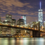 Brooklyn Bridge and Downtown Skyscrapers in New York at Night