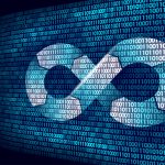 Devops software development operations infinity symbol. Programmer administration system life cycle quality. Coding building testing release monitoring. Data flow vector illustration.