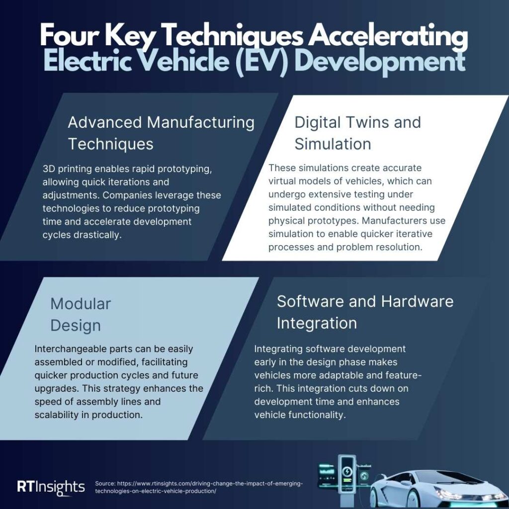 EV manufacturers employ several innovative techniques to enhance product development and ensure efficiency, which include: