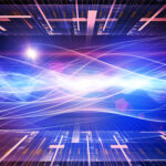 Design composed of technological and abstract design elements as a metaphor on the subject of digital media, signal processing and communication technologies