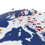 3d render of Europe map with countries flags