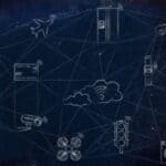 internet of things, smart connected objects communicating over a network (hand drawn low-poly inspired)