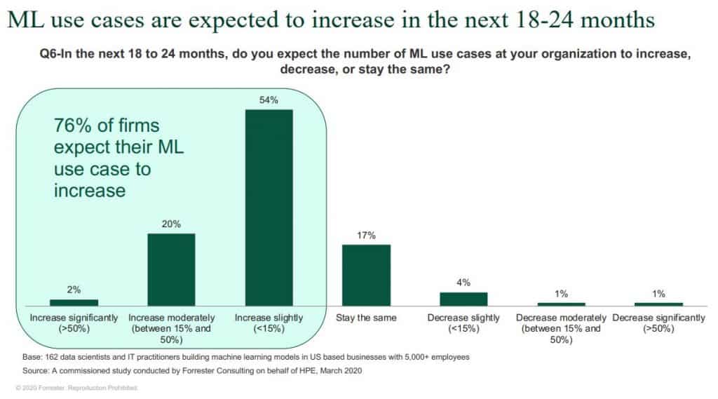 Surveying 162 data scientists and IT practitioners building ML models in U.S. enterprises, it found 76 percent expect their ML use case to increase in the next 18 to 24 months.