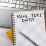 REAL TIME DATA text written on notebook on the laptop