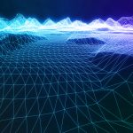 3D illustration abstract digital wireframe landscape. Cyberspace landscape grid. 3d technology. Abstract internet connection in cloud computing, communications network blue landscape.