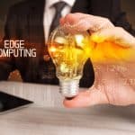 Businessman holding lightbulb with EDGE COMPUTING inscription, Business technology concept