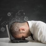 Concept of stress with businessman sleeping on a laptop