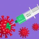 medical syringe containing the coronavirus vaccine destroys the COVID-19 virus bacterium. The concept of vaccination against coronavirus. Vector flat illustration