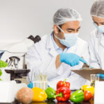 Food scientists using the microscope for research at the university