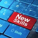 Education concept: computer keyboard with word New Skills on enter button background, 3d render