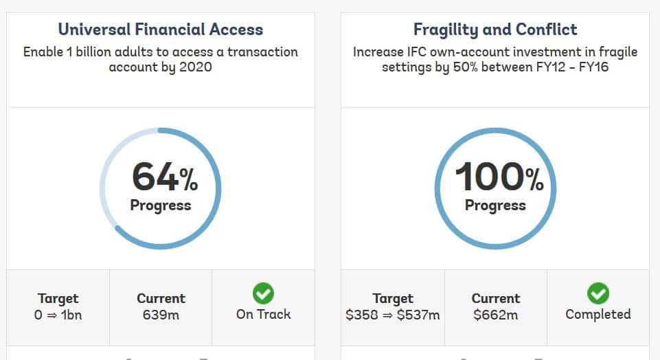 As documented in a case study published by the World Bank, the site launched with 12 targets “that reflect the priorities of the Bank Group vis-a-vis its developing country partners and the bank’s goals to end extreme poverty by 2030, and boost shared prosperity for the bottom 40% of the population in the developing world.”